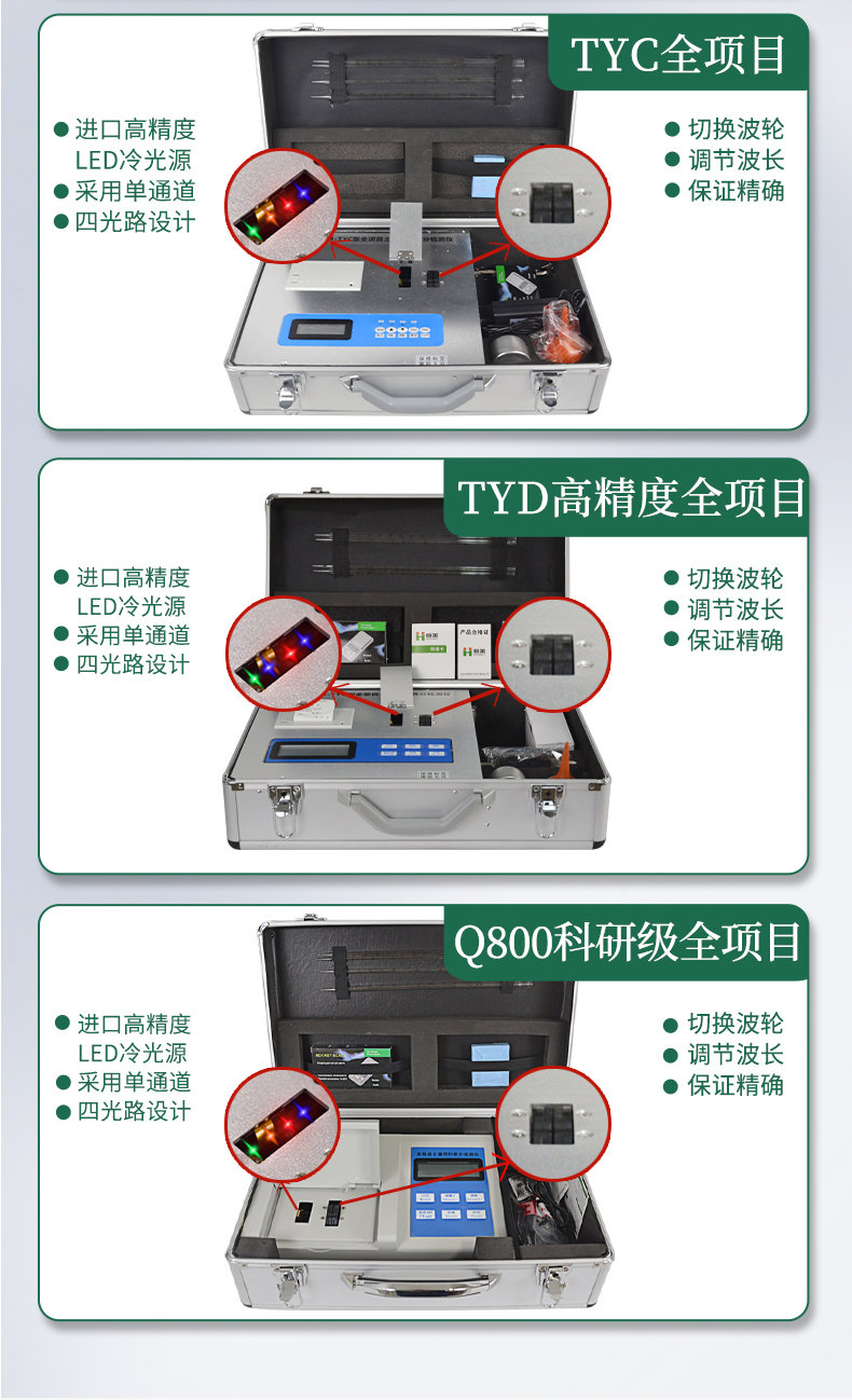 ★采用高亮LED光源,濾光式處理,保證光源波長(zhǎng)穩(wěn)定, 硅半導(dǎo)體作為信號(hào)接收系統(tǒng), 壽命長(zhǎng)達(dá)10萬小時(shí)級(jí)別。光源穩(wěn)定,重現(xiàn)性好,準(zhǔn)確度高。