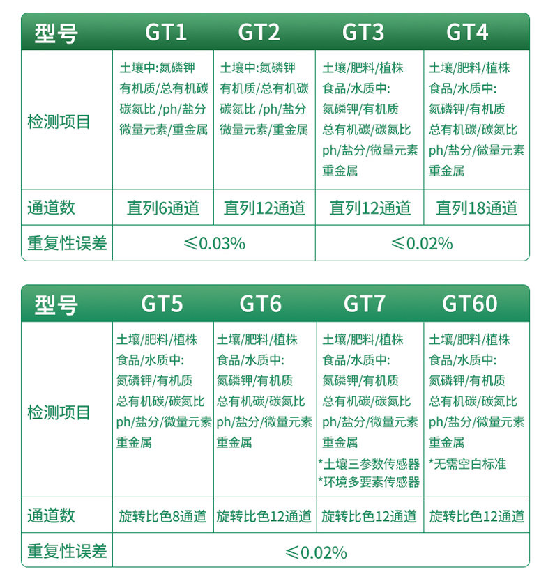 測試速度:正常熟練程度下,測一個土壤樣品(N、P、K)三項需要20分鐘(含藥劑準備及土樣前處理時間),同時檢測三個土壤樣品(N、P、K)≤40分鐘,同時測8個土樣≤1小時。