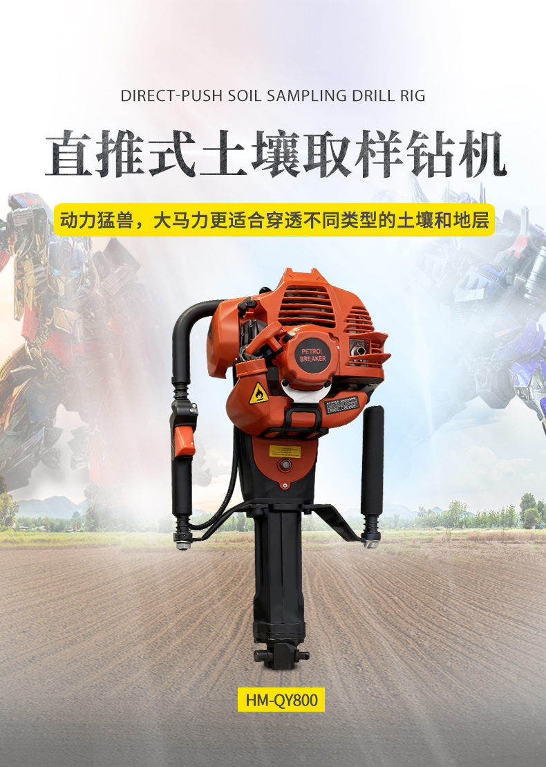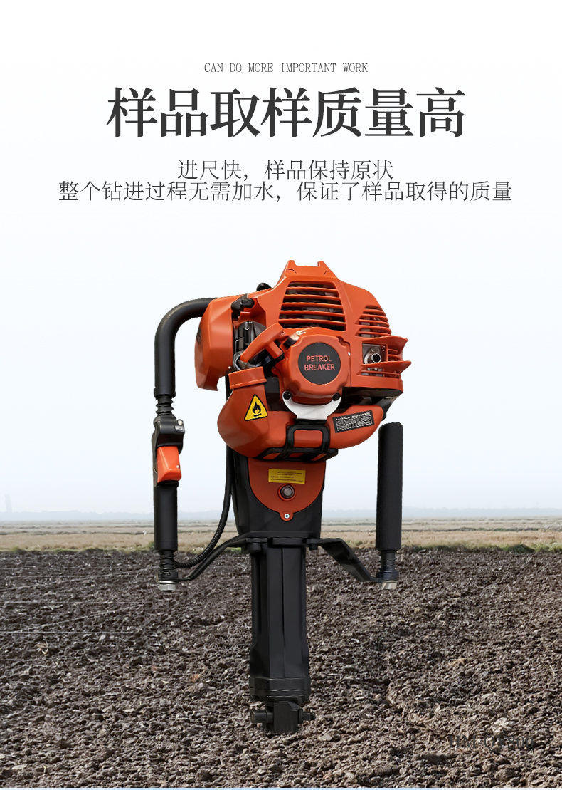 HM-QY800單人手持式土壤取樣鉆機是在參考大型液壓、汽油、氣動鉆機的基礎(chǔ)上設(shè)計的一款輕便的土壤采集鉆機。即使沒有操作經(jīng)驗的鉆探人員,簡單培訓就可操作。取樣過程及其簡單,1到2個人即可完成設(shè)備的操作。整個鉆進過程無需加水,保證了樣品取得的質(zhì)量(無污染、無擾動)。