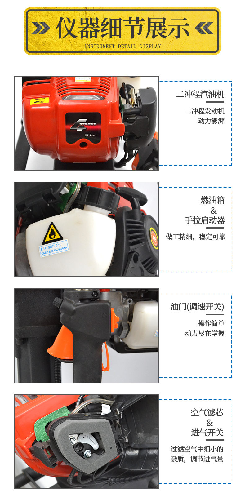 4、發(fā)動機類型:單缸二沖程發(fā)動機