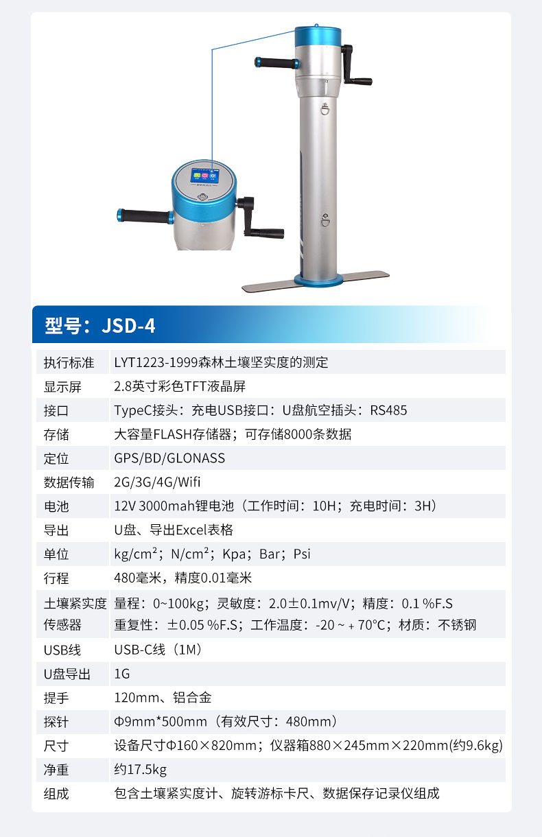 設(shè)備包含土壤緊實(shí)度計(jì)、旋轉(zhuǎn)游標(biāo)卡尺、數(shù)據(jù)保存記錄儀組成