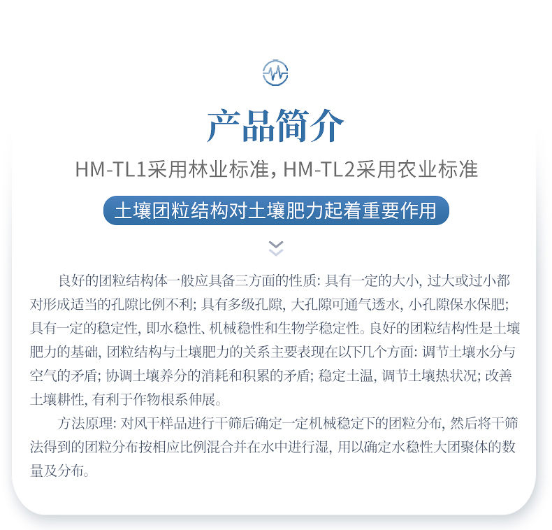 1、土壤團粒結(jié)構(gòu)對土壤肥力起著重要作用。良好的團粒結(jié)構(gòu)體一般應(yīng)具備三方面的性質(zhì):具有一定的大小,過大或過小都對形成適當(dāng)?shù)目紫侗壤焕?具有多級孔隙,大孔隙可通氣透水,小孔隙保水保肥;具有一定的穩(wěn)定性,即水穩(wěn)性、機械穩(wěn)性和生物學(xué)穩(wěn)定性。良好的團粒結(jié)構(gòu)性是土壤肥力的基礎(chǔ),團粒結(jié)構(gòu)與土壤肥力的關(guān)系主要表現(xiàn)在以下幾個方面:調(diào)節(jié)土壤水分與空氣的矛盾;協(xié)調(diào)土壤養(yǎng)分的消耗和積累的矛盾;穩(wěn)定土溫,調(diào)節(jié)土壤熱狀況;改善土壤耕性,有利于作物根系伸展。土壤團粒分析儀適用于土壤、環(huán)境、地質(zhì)等試驗室對團聚體的分析。